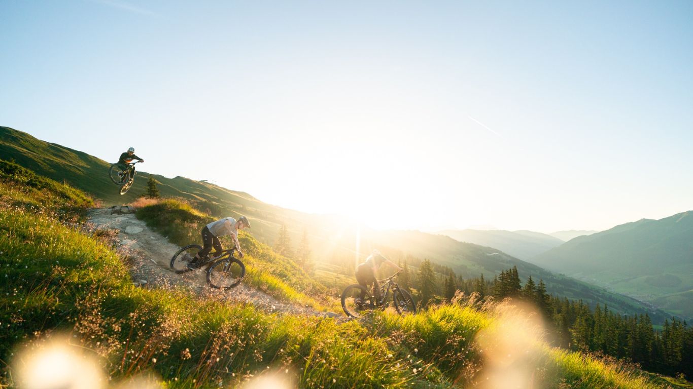 Von der Bergstation fährst du am Forstweg zur Rosswaldhütte. Danach geht es über einen weiteren Forstweg rund 500 Höhenmeter hinauf zum Reichkendlkopf. Oben wartet ein Höhenweg mit einem der schönsten Panoramen in Saalbach Hinterglemm. Am Ende dieses Höhenwegs startet der Trail.